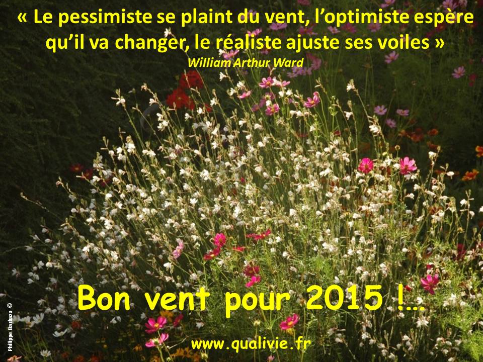 Quali’Vie souhaite à tous les meilleurs vents pour cette nouvelle année 2015… Philippe Barbaza Catégories : Actualités, Voeux1 janvier 2015Étiquettes : Voeux Quali'VieArticles prochesDe beaux rêves accomplis pour 2025 !…1 janvier 2025De nouvelles couleurs pour 2024 !…1 janvier 2024Beauté au détour des chemins de 2023 !…2 janvier 2023ISO19443 : encore un référentiel sectoriel pour compléter les exigences ISO9001 dans la filière nucléaire…30 juillet 2022Partages et abondance pour 2022 !…3 janvier 2022L’évaluation des performances dans la Certification IRIS de la chaîne de valeur Matériels Ferroviaires3 mars 2021